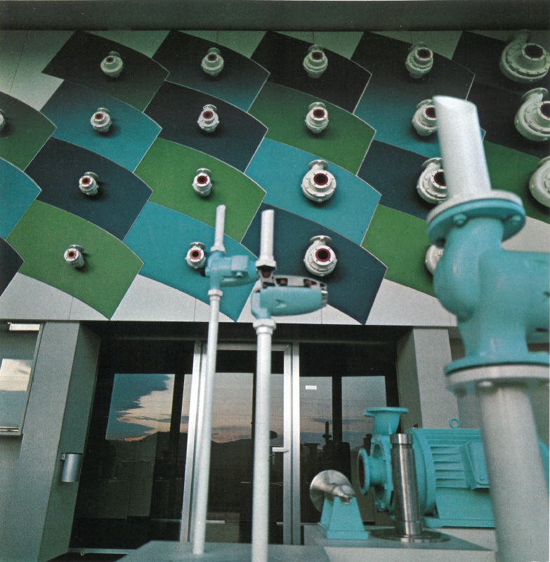 En 1964, on poursuit les aménagements : le bâtiment administratif initial est devenu trop petit, ce sera une tour de 5 étages, qui culmine à près de 22m qui sera construite : Les bureaux y sont installés avec, aux 4e et 5e étages un show-room permettant de montrer les nouveautés aux clients, et à l’extérieur du bâtiment des jeux d’eau accueillent les visiteurs, rappelant que l’entreprise est spécialisée dans les pompes.